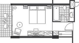 A comfortable room with European king or twin beds, offering an average size of 25 sqm, decorated with calming earth tones and hints of blue, with a balcony featuring inland views that perfectly embody the ambiance of the Mediterranean. Superior Rooms boast en-suite bathrooms with a bathtub and hand shower, toiletries, and hairdryer. The room itself includes amenities such as a mini-bar, safe, LCD-TV, mini-bar, and tea and coffee-making facilities. An extra bed or child’s bed or cot may be provided upon request. Maximum occupancy 3 pax. For Families and on request, may connect to another Superior Room.